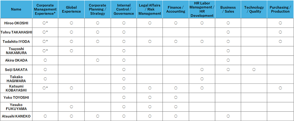 (Note) The asterisk (*) indicates that the person has an experience as President of the Company or its subsidiaries.