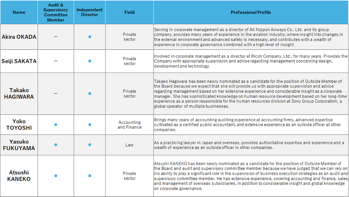 The Board of Directors is composed of diverse directors from different backgrounds in terms of their expertise and experience, with due consideration given to gender, internationality, etc. As a result, the Board of Directors engages in constructive and lively discussions from a variety of perspectives, including perspectives from outside the Company.
